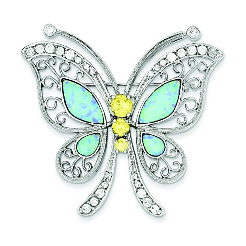 -. Title : Jewels Obsession's Sterling Silver Blue Opal with Yellow and Clear CZ Butterfly Pin