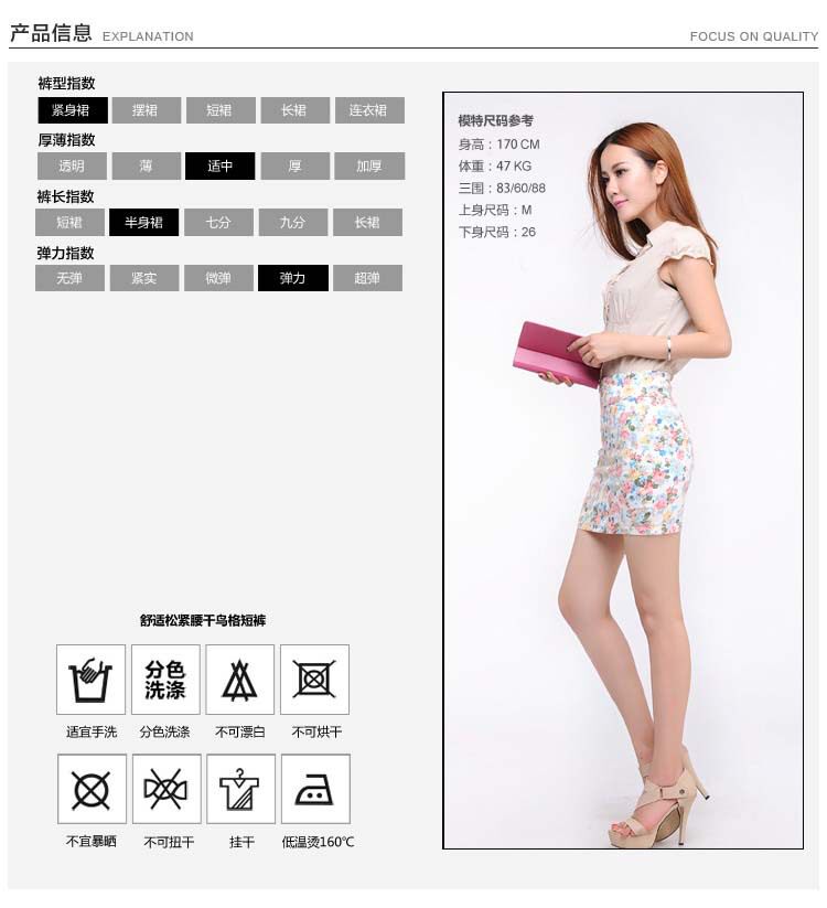 Size M code: waist circumference 54-80, hip circumference 66-100, hem 60, skirt length 38