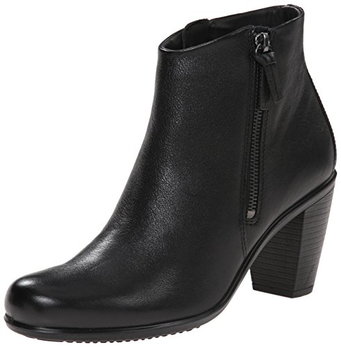 Strut like you mean it in the ECCO Touch 75 Ankle Bootie. This elegantly simple women's low-shaft boot has a premium leather upper with dual side-zipper closures for dressing ease. ECCO�s Comfort Fiber System (ECFS�) includes a leather-covered insole for cushioned support and a moisture-absorbing circulation system to keep feet cool. With a sculpted stacked heel and polyurethane sole for steady traction, the ECCO Touch 75 Ankle Bootie is a versatile choice for chic comfort.Feature