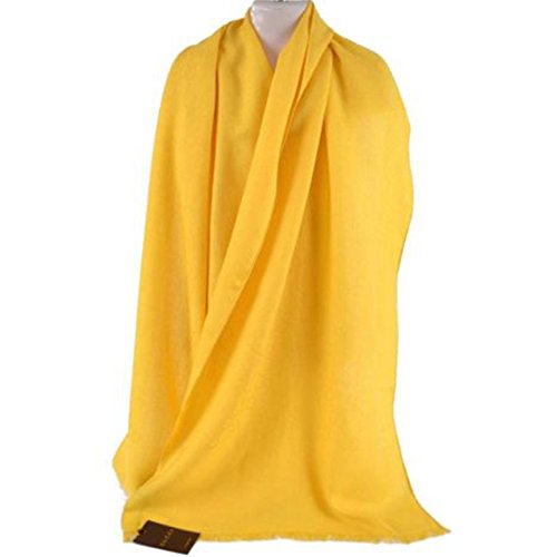 Gucci Silk & Wool 'GG' Logo Monogram Scarf 165904, Yellow: Silk and Wool Blend Scarf: 100% authentic, made in Italy. Lightweight Gucci 'GG' logo scarf with fringed ends.