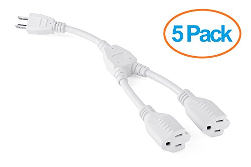 Aurum Cables 3 Prong 1-to-2 Power Cord Splitter Cable - Power Extension Cord - Cable Strip Outlet Saver - Outlet Splitter Electrical Cord - 1 Foot - 16AWG - UL approved - White - 5 Pack
