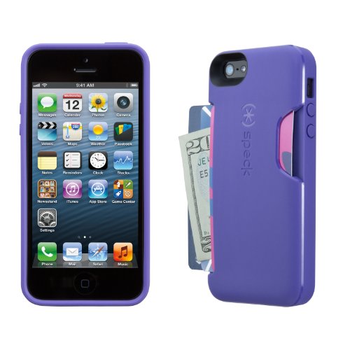 On the run? Looking to travel light? Speck's SmartFlex Card case is your quick wallet alternative. The unique design of this iPhone 5 or 5S case allows you to carry up to 3 cards (or folded bills) securely in the built-in side-loading slot. A handy thumb release gives you access to your cards whenever you need them. Durable and lightweight, the SmartFlex Card case provides protection for your iPhone while giving you a great way to slim down your "baggage". A raised bezel around the screen and rubberized button covers add protection and grip, Case flexes on and off easily.