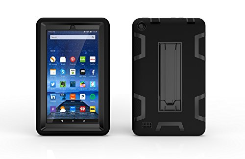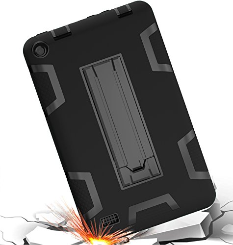 Case for Amazon Kindle Fire 7 Tablet, [Kickstand] 3 in 1 Hybrid Shockproof Impact Resistant Armor Defender Protection Cover for Kindle Fire 7 (black)