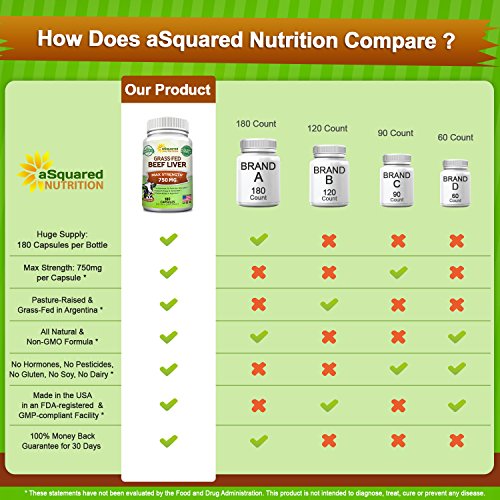DESCRIPTION: MAX STRENGTH DESICCATED BEEF LIVER SUPPLEMENT SOURCED FROM PASTURE-RAISED ARGENTINA GRASS-FED CATTLE. * Not all Beef Liver supplements are created equal. Our Beef Liver powder supplement is an All Natural Non-GMO formula that packs in 750mg of Desiccated Beef Liver per capsule. We offer a huge supply of 180 veggie capsules per bottle. * HOW OUR BEEF LIVER COMPARES: · Max Strength: 750mg per Capsule * · 180 Capsules per Bottle · Pasture-Raised Cattle · Argentina Grass-Fed Cattle · Desiccated Beef Liver Powder (dehydrated) · All Natural Non-GMO Formula * · No Hormones No Pesticides * · Gluten Free, Soy Free, Dairy Free * · Manufactured in the USA · FDA Registered GMP Compliant Facility * · Third Party Tested for Purity Potency * BENEFITS OF BEEF LIVER: · Super Food Packed with Nutrients * · Promotes Energy Metabolism * · Supports Athletic Performance Muscle Building * · Promotes Stamina Endurance * · Helps with Fat Metabolism * · Supports Brain, Heart Liver Health * · Supports Healthy Joints Collagen * NUTRIENT DENSE SUPER FOOD: · Great Source of Vitamins A, B2, B6, B12, Folic Acid (Folate), Pantothenic Acid, and Vitamin D * · Great Source of Minerals Including Potassium, Magnesium, Copper, Iron, Phosphorous, Selenium, Zinc * · Contains Many Amino Acids Such as Arginine, Methionine, Lysine, Phenylalanine, Tyrosine, Histidine, Tryptophan, Glutamic Acid * * The results described are not typical and will vary based on a variety of factors. Results may vary. * These statements have not been evaluated by the Food and Drug Administration. 0 |