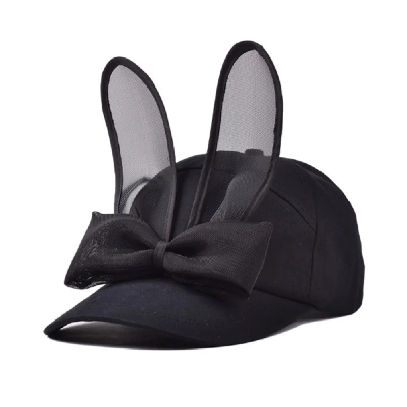 Features:Women Rabbit Ears Baseball Cap With Bow