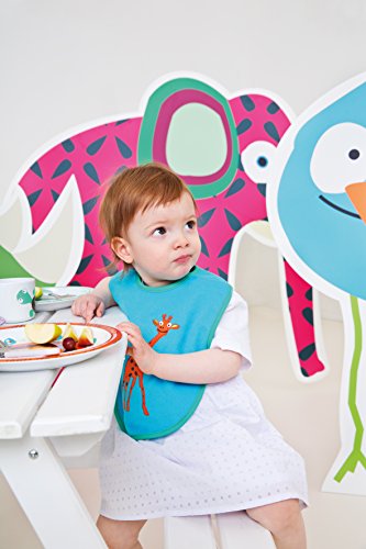 Lassig Waterproof Washable Medium Bib with Velcro Stay-dry Leak-proof Keeps Stains Off Clothes, Wildlife Giraffe