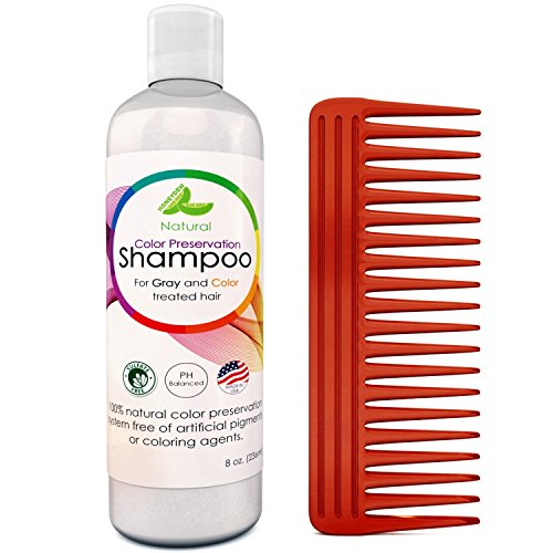 Color Preservation Shampoo for Graying & Color Treated Hair with Comb Gift Set – Sulfate Free Natural Treatment w/ Coconut Oil for Men, Women & Teens