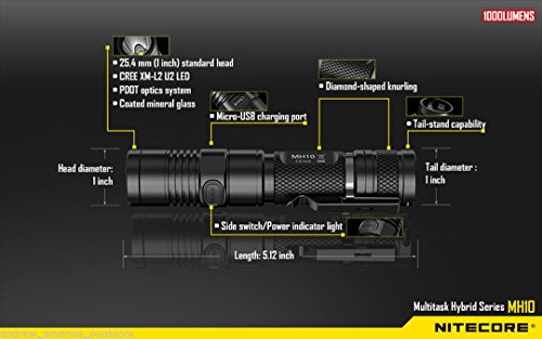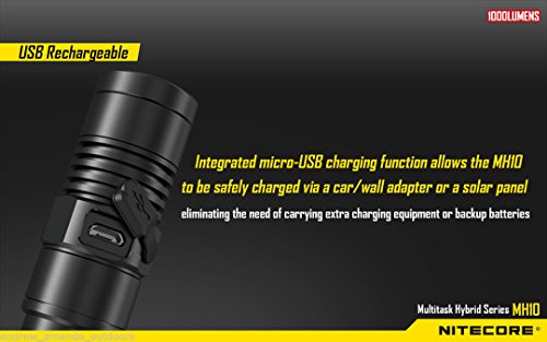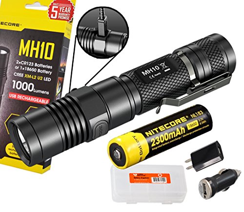 Nitecore MH10 1000 Lumens Rechargeable LED Flashlight w/ Battery, USB AC DC Charger, Holster and Lumen Tactical Battery Box