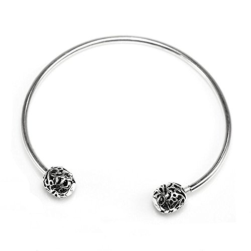 -. Feature : Fits , Troll, Chamilia, Biagi and other European Style Bead Charm / Materials: 925 Sterling silver (Stamped) / Cuff Size: approximately 6.5 Inches / Size: approximately 2.5mm (thickness), the screw ball is approximately 11mmx 9.5mm