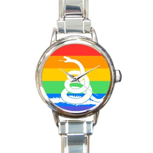 -. Title : Personalized Watch Gadsden Flag Don't Tread On Me Round Italian Charm stainless steel Watch