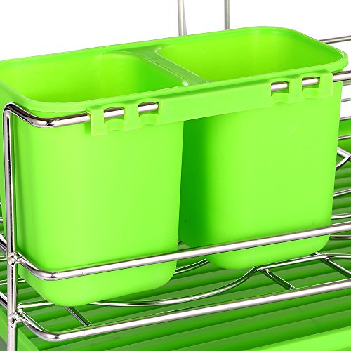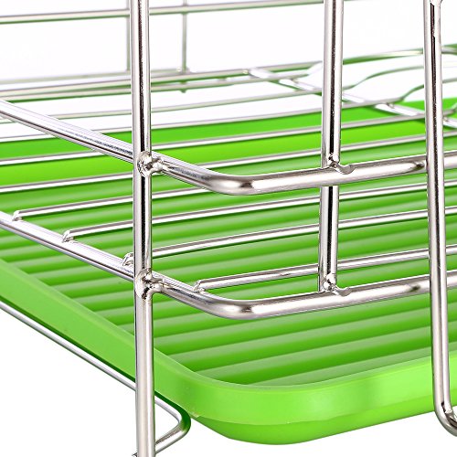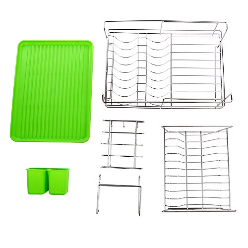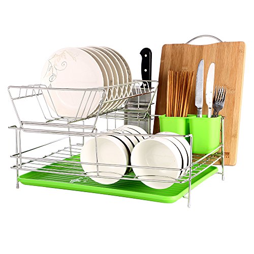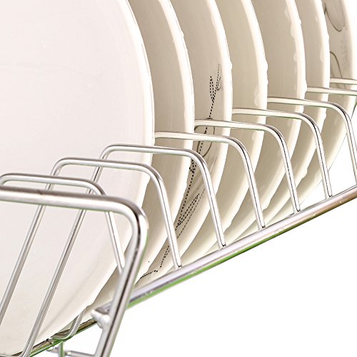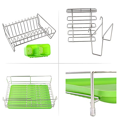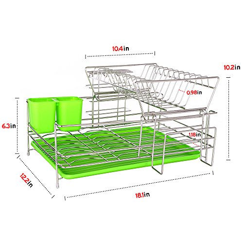-. Feature : THE NEWEST VERSION:Dish rack made of high quality stainless steel,not only sturdy structure, but also stainless-ness and long lasting performance to protect the rack from moisture/oil/acid and alkali corrosion in cooking environment. The unique detachable two-tier design,it can accommodate more tableware than ordinary single-layer dish rack, and occupy a small area. / ALL-IN-ONE VERSATILE ORGANIZER: Can store,forks,spoons,chopsticks, mug ,glass, knife,Chopping board,bowls and other dishes Kitchen rack,Cup Drainer Strainer , detachable divided utensil holder and one plastic drainage tray for excess water to collect,The two tiered rack provides more space without costing more counter top space making it very convenient. / DIMENSION : 18.1 "(L) x 12.2" (W) x 10.2 "(H) ,WEIGHT : 5.15 pounds / EASY ASSEMBLY & CLEANING: The special design will be easy to clean. the catch tray under the bottom rack. Very easy to pull out and dump the tray of the drip water and wipe it clean. No more nasty plastic no matter how often you rinse it outAll component parts included.Comes with an easy-to-follow instruction manual for hassle-free assembly. / Full LIFETIME WARRANTY: 100% satisfaction guarantee, 100% worry-free guarantee, 2-year manufactures guarantee! 180 day return&money back guarantee, we're offer the premium quality and the best service, no matter what reason cause you don't love it, we'll replace it or reimburse you every cent back!