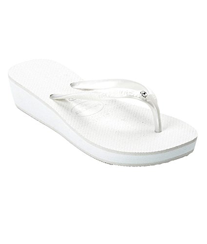 Elevate your look in these comfortable wedge flip flops. Swarovski crystal on thin straps add a chic element. 1.5'' wedge, .75'' platform and non-slip rubber sole. Brand : Havaianas Item model num : 4135919 MPN(PartNumber) : 4135919-100 EAN : 0887252269290 Product Dimensions(LxWxH) :
