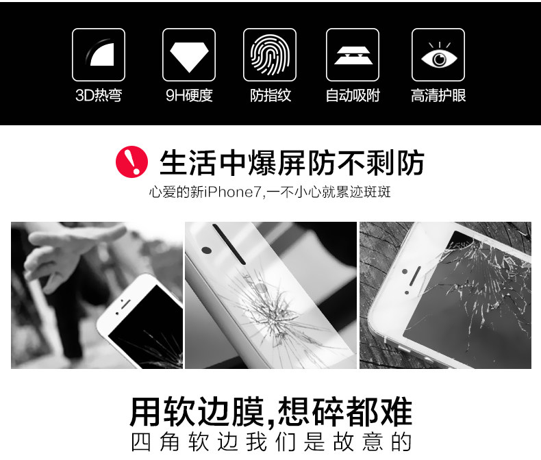 生活中小小的不经意就会有磕磕碰碰,如何避免钢化膜碎边等问题,请使用软边钢化膜额!