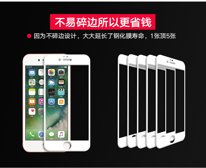 因为不碎边设计,所以更经久耐用,大大延长钢化膜寿命,所以更省钱额!