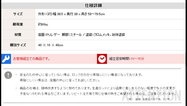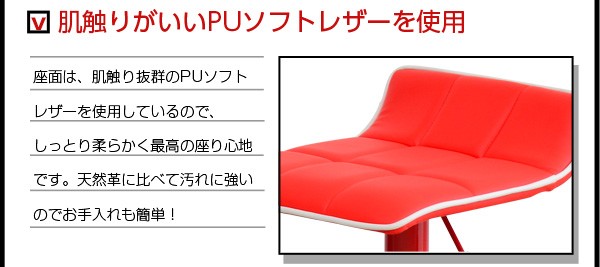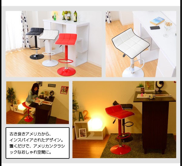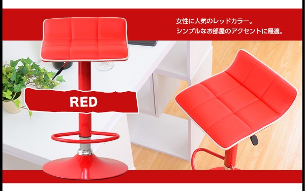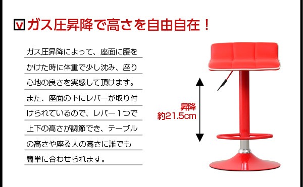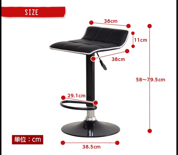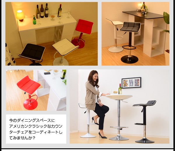 【商品について】■サイズ:外寸:(約)幅38.5x奥行き38x高さ58~79.5cm■カラー:ブラック ホワイト レッド■素材:材質:座面:PUレザー脚部:スチール塗装:クロムメッキ、粉体塗装■その他:・生産国:中国・お客様組立商品です ※メーカー直送品、商品代引き不可
