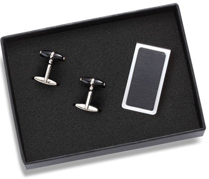 -. Title : Aeropen International MCU-10 Set Metal- Black Genuine Leather Money Clip and a Pair of Cufflink in Black Gift Box