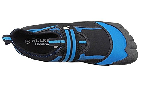 -. Binding : Apparel -. Brand : Rockin Footwear -. Department : mens -. Feature : The amphibious design will protect your toes & feet from sand to surf. / Breathable mesh panels & Velcro strap. / Extra durable traction sole will keep you sturdy and reduce slips. / Easy on & off hook and loop closure. / Made of durable rubber for longer lasting. -. Label : Rockin Footwear -. Manufacturer : Rockin Footwear -. NumberOfItems : 1 -. PackageQuantity : 1 -. ProductGroup : Shoes -. ProductTypeName : SHOES -. Publisher : Rockin Footwear -. Studio : Rockin Footwear -. Title : Rockin Footwear Mens Aqua Foot Water Shoes