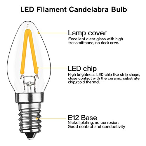 2W LED Filament Bulb could replace your current 20-Watt incandescent E12 light, turning on at full brightness with 150 lumens, providing super bright warm glow white light and improving ambiance, energy-efficiency and comfort. Plug and play, saving labor and electricity cost. Easy to Install