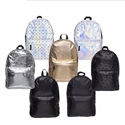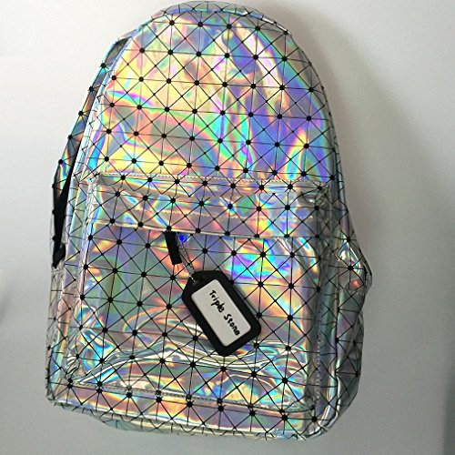 -. Title : Women Silver Laser Backpack Men's Bag leather Holographic Geometric Backpack