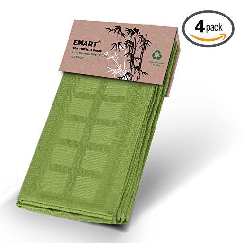 Emart Bamboo Kitchen Dish Towels, Super Absorbent and Durable for Tea Towels, Green Dish Cloths, 26 x 18 inch, set of 4