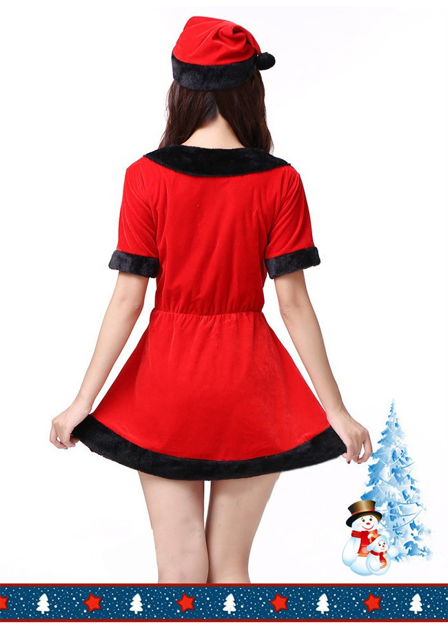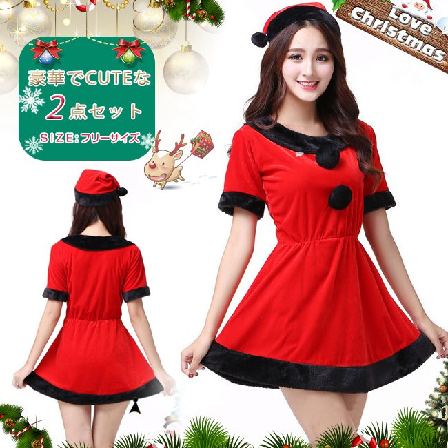 サンタ コスプレ レディース クリスマス 衣装 半袖 aライン ポンポン飾り ワンピース 帽子 コスチューム かわいい サンタクロース 仮装 変装 大人 服 セットアップ サンタコス セクシー 黒赤 バイカラー パーティーグッズ イベント用品 余興 xmas Christmas cos 女性用