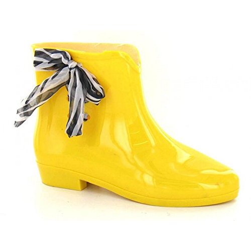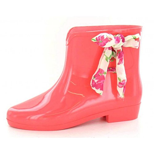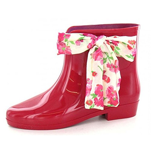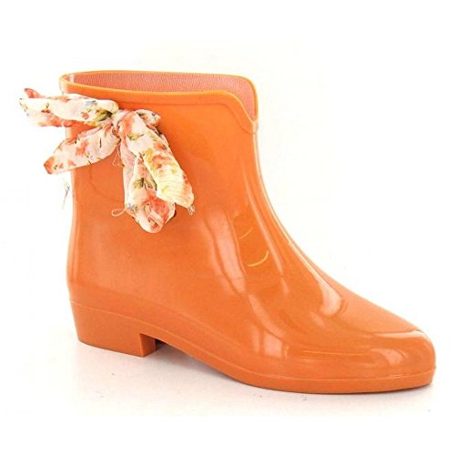 Product DescriptionLadies ankle wellington boots. Waterproof. Slightly pointed toe. Fabric bow around the top of the wellie. Upper: Synthetic. Sole: Synthetic.0