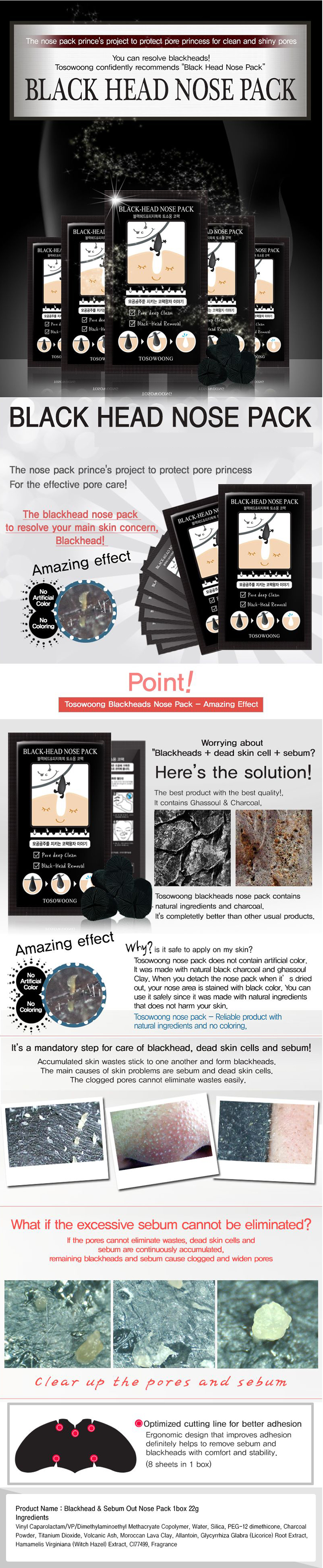 [TOSOWOONG] Blackhead & Sebum Out Nose Pack 8 Sheet in 1 Box