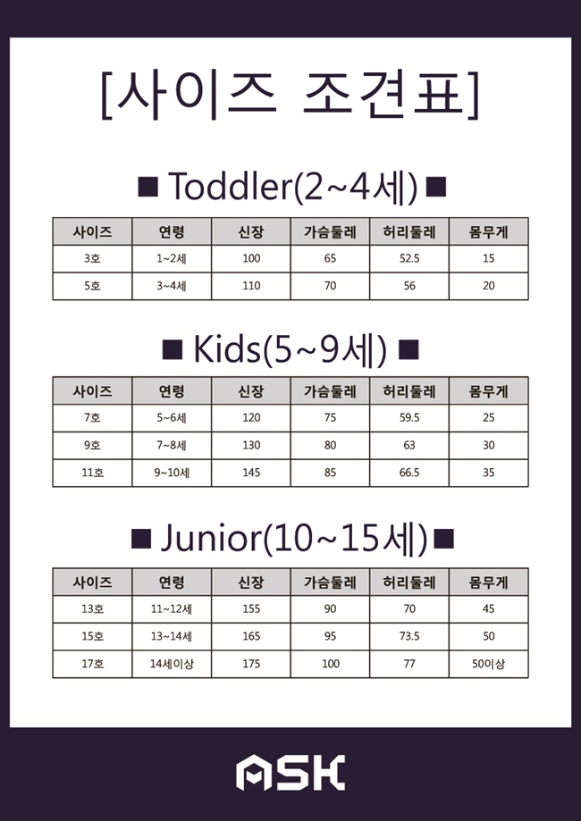 *사이즈 : 5(110),7(120),9(130),11(145),13(155),15(165)