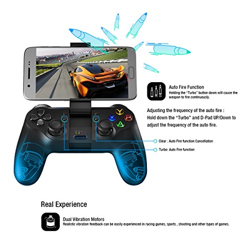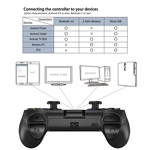 4.Support Multi-Platforms Devices: Android 4.0 and later/Windows 10/8/7, /PlayStation3;Connections typle: 2.4Ghz USB dongle /Bluetooth 4.0/ Wired connection.