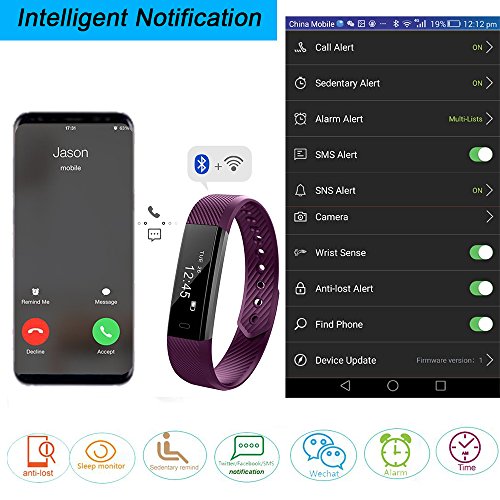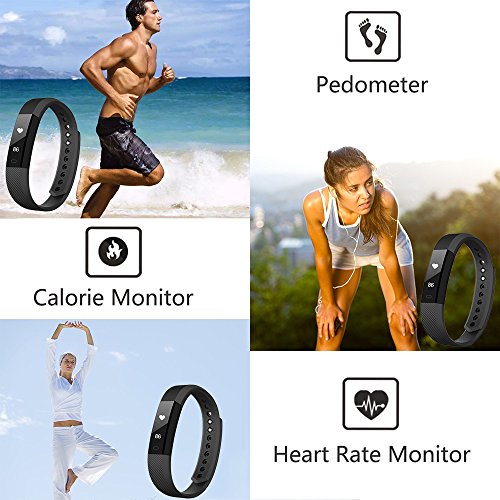 -. Feature : Fitness Tracker Heart Monitor: Newest wristband combined with fashion, sports and business. With 0.86 inch OLED HD Display screen, showing the date, clock and battey clearly / Multi-function Smart Bracelet: Pedometer, Distance, Calories Burned Measuring, Sleep Monitor, SMS Reminding, SMS Content Shows, Incoming Call ID Show, APP Message Reminder(including Facebook etc), Camera Remote Control, Sedentary Reminder, Anti-lost, Sports target remind / Durable Battery and USB Charging: Built-in USB plug, insert it inside the USB port to charge. It's more convenient to get charged everywhere. you can plug inot the bracelet to charge well anytime and anywhere. Charging time 1 hour for 7 days standby fitness tracker using / Fitness Tracker Compatibility: Android 4.4 or Above Android Smartphones, and IOS 7.1 or Above Apple iPhone& BT 4.0 system. APP---'Veryfit for heart rate. Please scan and download the new updated APP "veryfitpro" from the last picture of page. Its performance is more stable / Sleep tracker heart rate monitor: Check your heart rate automatically or manually, know your all-day heart rate and track how long you spending in deep and light sleep to give you a clear picture of your sleep quality.Get it, we extend a 12 Month worry-free warranty and friendly customer services
