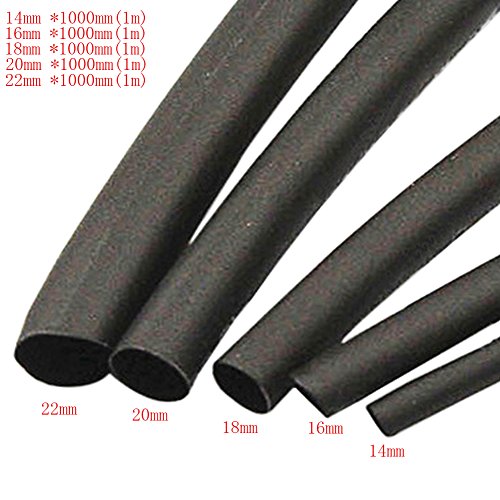 ROOS 5 Pcs Black Assorted Heat Shrink Tube 5 Sizes and All are 1m (L)