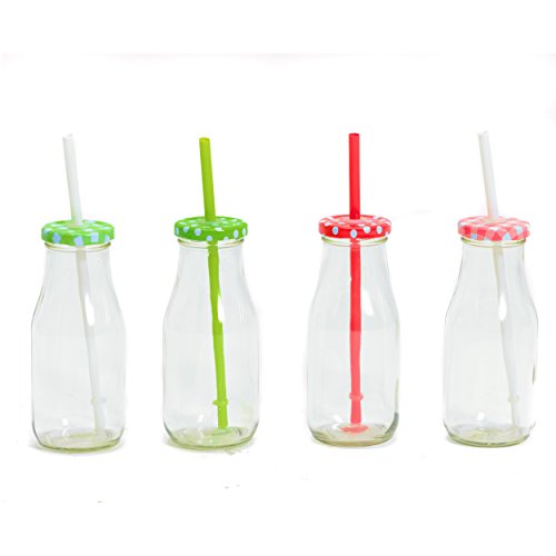 Studio : Whole House Worlds Publisher : Whole House Worlds Product Description Serve your favorite drinks in our rustic Farm Fair Milk Jar Drinking Cups. These beautiful vintage style bottles are versatile and are great for centerpieces, BBQ, parties, picnics and so much more. Sold as a set of 4, each bottle is crafted of heavy duty glass that is dishwasher safe. Well sized, the packaged set of country style drinking cups measures as follows: 10¾ L x 3 W x 6¼ H inches and holds approximately 11 fluid ounces . Bright and cheerful gingham and dot patterned tops of assorted colors (red, green and white) feature a food-safe lid punctured with a hole to hold the reusable straw. AN IDEAL GIFT, it's perfect to celebrate holidays, birthdays, weddings and many more. So gorgeous, you'll want to keep it at home for yourself. Enjoy! By Whole House Worlds Welcome to the product line of Whole House Worlds. The New York based company offers high quality, stylish products for every room in the house, and beyond. From the kitchen, to the living room, to the bedroom, dining room, home office, closet and garden: Our criteria are comfort, quality, style and value. 0