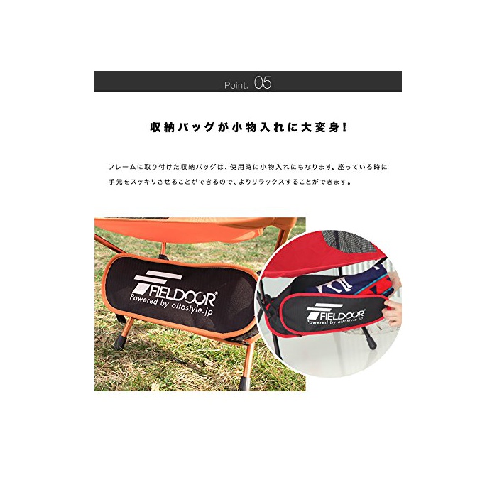 FIELDOOR 【내과중100kg】 포터블 콤팩트 아웃도어 체어 폭53cm×(길이)깊이50cm×높이72cm 경량 콤팩트/접이식/운반 가능