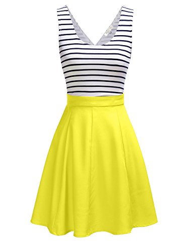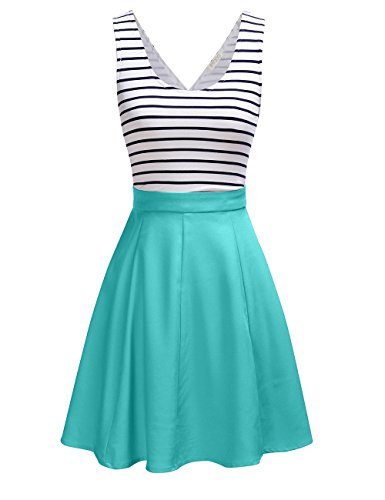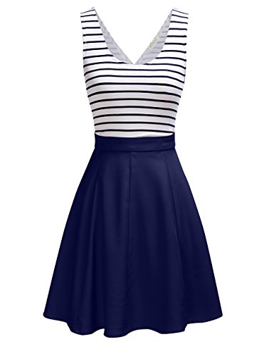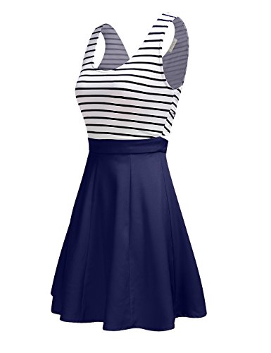 FSOOG Women's Cross Back Sleevless Cocktail Party Striped Casual Tank Mini Dress