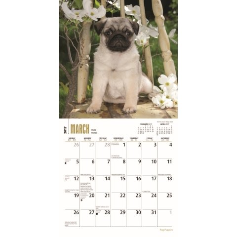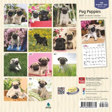-. Binding : Office Product -. Brand : 2017 Calendars -. Feature : 2017 Calendar featuring beautiful images for every month of the year. / Includes Holidays and Observances. / Keep your appointments and Birthdays organized in one place! / Perfect for office spaces, bedrooms, classrooms and more! / Makes a great gift for friends and family! -. Label : 2017 Calendars -. Manufacturer : 2017 Calendars -. MPN : 0 -. PackageQuantity : 1 -. PartNumber : 0 -. ProductGroup : Office Product -. ProductTypeName : OFFICE_PRODUCTS -. Publisher : 2017 Calendars -. Studio : 2017 Calendars -. Title : Pug Puppies - 2017 Mini Calendar 7 x 7in