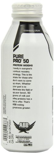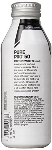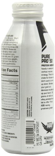 Studio : American Body Building Publisher : American Body Building Binding : Health and Beauty Product Description Pure Pro 50 comes on strong with 50 grams of protein from milk and whey. Nothing comes close for convenience, taste and muscle-building support. A superior resealable aluminum bottle further distinguishes this potent potion from the pack. It keeps your protein cooler longer while providing an easy way to save some for later. Work Pure Pro 50 into your workout routine and experience ABB superiority first hand. * 50 g of Protein From Milk Whey * Resealable Aluminum Bottle * Essential Amino Acids Including BCAAs * 2-4 Grams of Fat * 3-4 Grams of Sugar 0