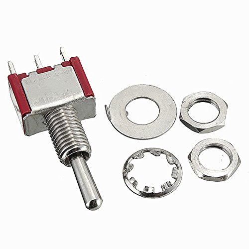 Studio : BephaMart Publisher : BephaMart Binding : Electronics Product Description Toggle Switch MTS-123 3 Pin SPDT ON/OFF/ON 3 Position Momentary Features: -Environmental protection high temperature resistant -With three grade can be adjustable -Single Pole Double Throw, ON-(ON) -Environmental protection high temperature resistance Specifications: 5A 120VAC, 2A 250VAC Controlling resistance: 20MΩ max Insulation resistance: 500VDC 1000MΩ min Operating Temperature: -25℃~ 85℃ Life span: 10000times Function: MTS-123 ON-(ON) Installing hole: 6mm Material: plastic copper Package included: 1 x Toggle Switch