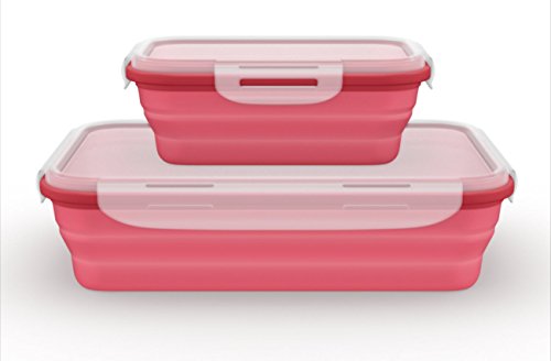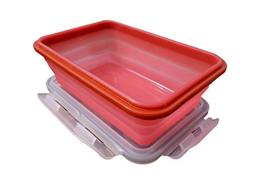 Leakproof, Silicone Collapsible Food Containers with Lock Lids, Set of 2. Excellent Travel Containers with Lids for Office, Motorhome, Boat, Camping, Picnic. Good Soup Carrier.