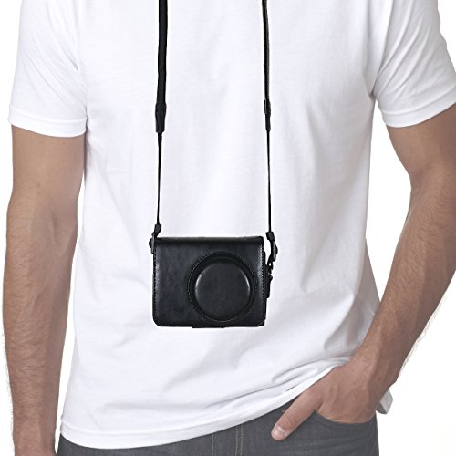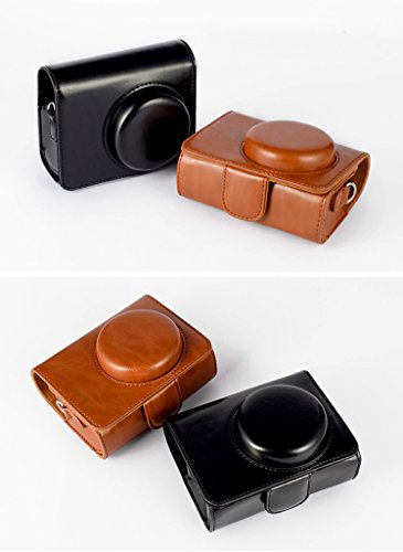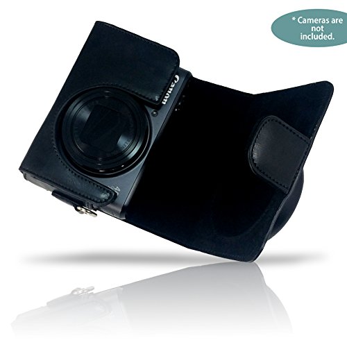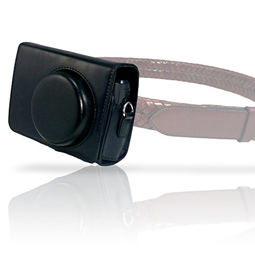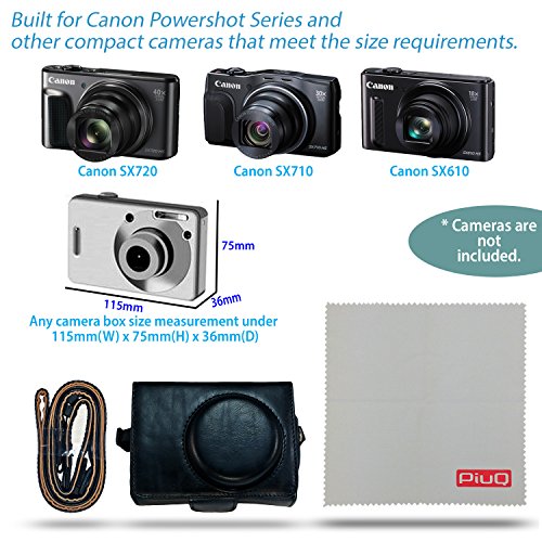 Canon SX720 710 620 HS Premium Jacket Case - PiuQ Vintage Retro Classic Style PU Leather Protective Cover Case Bag with Shoulder Strap for Canon Sony Nikon Samsung Panasonic Compact Cameras (Black)