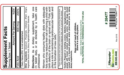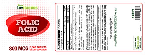 TNVitamins Folic Acid 800 Mcg. - 1000 Tablets