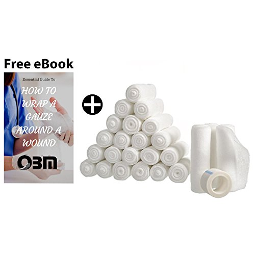 Premium 24-Pack 4x4 Elastic & Stretchy Medical Gauze Dress Roll By OBM –Bandage Kit W/ Medical Tape –Medical Grade Sterile First Aid Dressing Bandages –FDA...