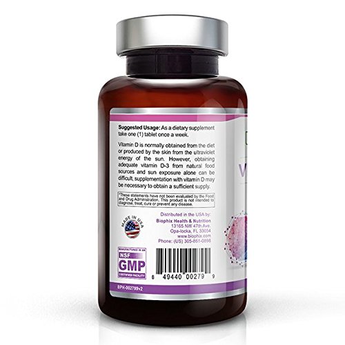 -. Binding : Health and Beauty -. Brand : biophix -. EAN : 0849440002799 -. Feature : Promotes healthy Bones / Immune support / Fights infections -. Label : Biophix -. LegalDisclaimer : This information is intended for your general knowledge only and is not substitute for professional medical advice or treatment for specific medical conditions. This information is not intended to diagnose, treat, cure or prevent any disease. Always seek the advice of your qualified physician or other health care provider with any questions you may have regarding a medical condition. Keep out of reach of children. -. Manufacturer : Biophix -. MPN : 0849440002799 -. NumberOfItems : 1 -. PackageQuantity : 1 -. PartNumber : 0849440002799 -. ProductGroup : Health and Beauty -. ProductTypeName : HEALTH_PERSONAL_CARE -. Publisher : Biophix -. Studio : Biophix -. Title : Biophix Vitamin D-3 50,000 IU 240 tabs -. UPC : 849440002799