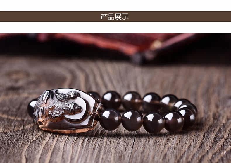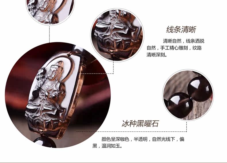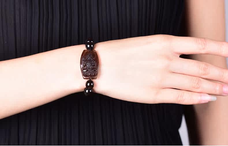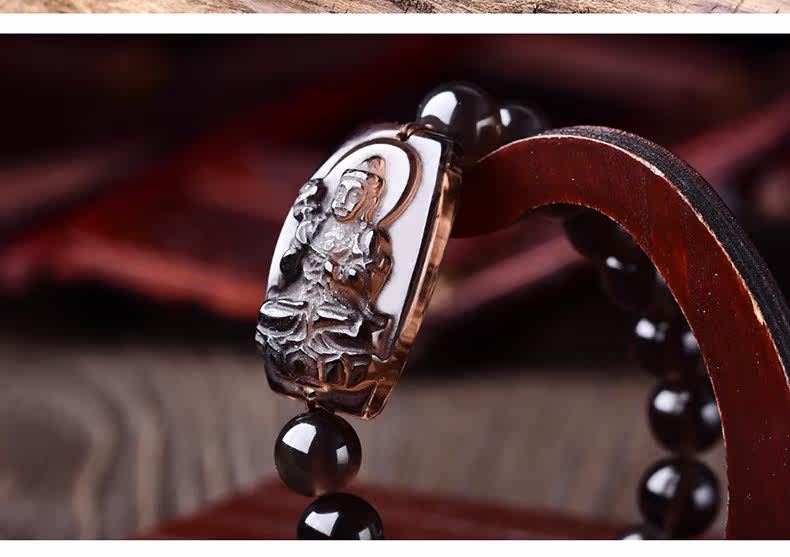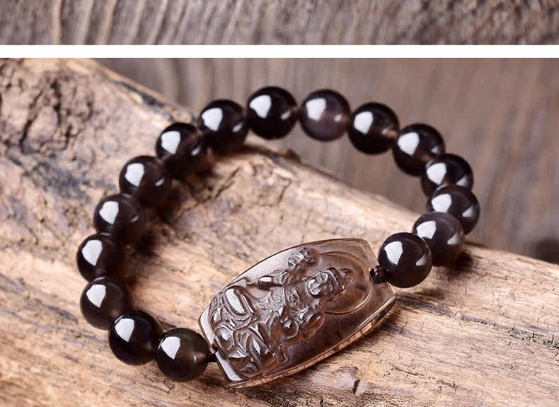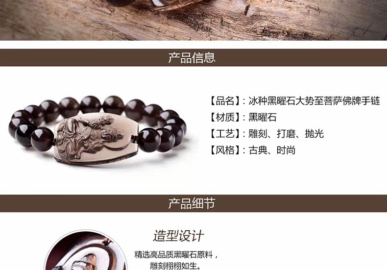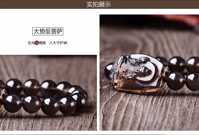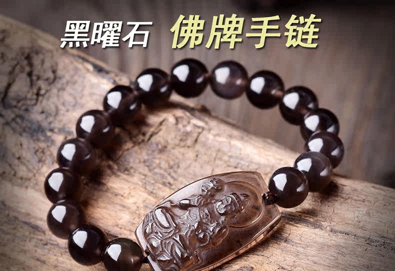 开光天然黑曜石手链大势至菩萨守护神生肖属马本命佛手串
