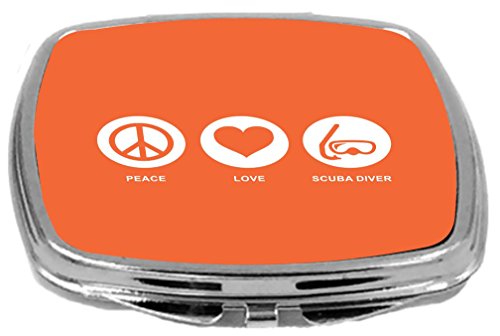Rikki Knight Peace Love Scuba Diver Design Compact Mirror, Orange, 2 Ounce