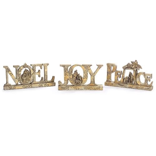 Set of 3 Nativity Scenes In Peace, Joy and Noel Signs