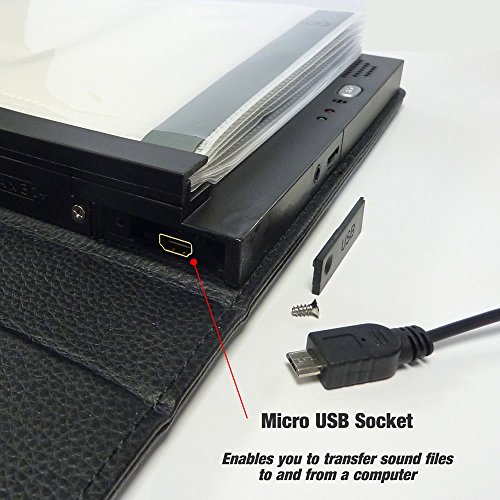 Studio : Talking Products Ltd Publisher : Talking Products Ltd Binding : Kitchen Product Description Deluxe Talking Photo Album with 200 minutes of recording time. Record speech, music and sound effects. This Deluxe Album has superior quality voice recording, enhanced playback quality, an improved recording method and we've also added a micro USB socket for file transfer. See full list of features below. CREATIVE IDEAS FOR USE: Create a special Family Photo Album, Anniversary gift, Holiday Snaps, Memory Book, Reminiscence Packs, Job leaving gift, Adoption gift, display old School photos or Wedding memories. Combine speech, music and sound effects, together with your photos to create a unique and very personal gift. FEATURES: 20 pages in a 'flip style' Album. Each of the 20 pages will hold a single photo in a clear pocket. Page Size 5x7 inches, (125x175mm). Record a separate voice message on each page using the built-in microphone. Total recording time: 200 minutes, across 20 pages, (example: approx 10 minutes per page) . Re-record as many times as you wish - reuse time and time again! High Quality Recording, (High Definition WAV format 192kbps sample rate). Playback Formats: WAV and MP3. Each page has an individual Play/Pause Button. Earphone Socket for personal listening, (3.5mm Phono). Built-in Speaker with Volume Control. 4GB of Internal Flash Memory. Micro USB Socket for file transfers. Compatible with Windows PC, (Sorry NOT compatible with Mac) Save and transfer voice recordings from the Album to a computer via USB. Transfer WAV or MP3 sound files from your computer to individual pages on the Album. Upload multiple sound files onto each page (easy to use instructions included) Insert a 6x4" Photo into the Front Cover. Requires 3 AAA Batteries USB Cable Included, (for file transfer). Recordings are preserved forever, even when batteries are replaced. Size: 225 x 175 x 35mm Approx. Black Faux Leather Cover. Easy to use.