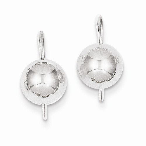 14k White Gold 8.00mm Hollow Half Ball Earrings (16mm x 8mm)