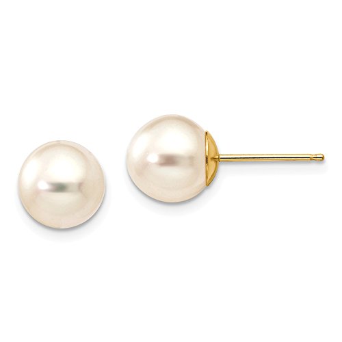 Solid 14k Yellow Gold 8mm FW Cultured Pearl Earrings