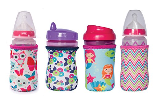 KIDZIKOO - #1 NEOPRENE BABY BOTTLE/SIPPY CUP INSULATOR COOLER COOZIE - GIRLS PINK 4-PACK