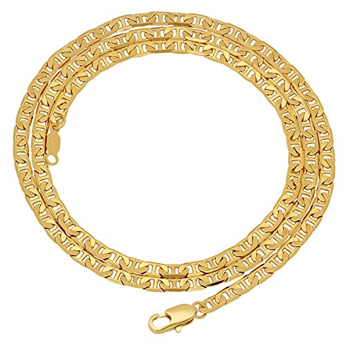 POLISHED & DURABLE - This 24k gold plated 18 inch mariner necklace is 3.5mm wide (0.7mm thick) that fastens with a sturdy lobster clasp creating a luxurious experience of a traditional solid gold chain